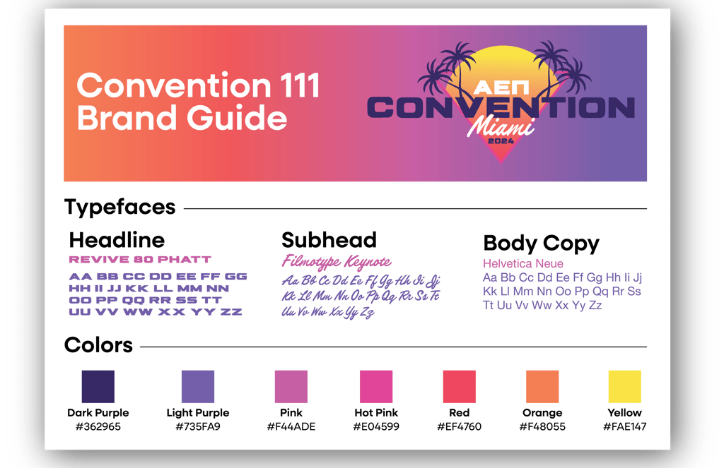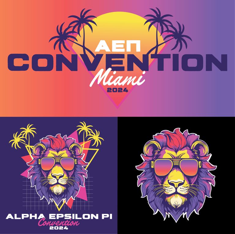 For AEPi’s 111th International Convention in Miami, I created a full brand identity inspired by the bold, neon-soaked energy of Miami Vice. From signage and slide decks to social media assets, name tags, and a custom-branded website, every touchpoint was designed to feel unified, high-energy, and unmistakably “Miami.” I built the entire visual system from the ground up using Adobe Creative Suite, and adapted it across dozens of last-minute requests and tight deadlines. Seeing the brand come to life throughout the event — and knowing it held up across every format — was one of the most rewarding moments of my career so far.