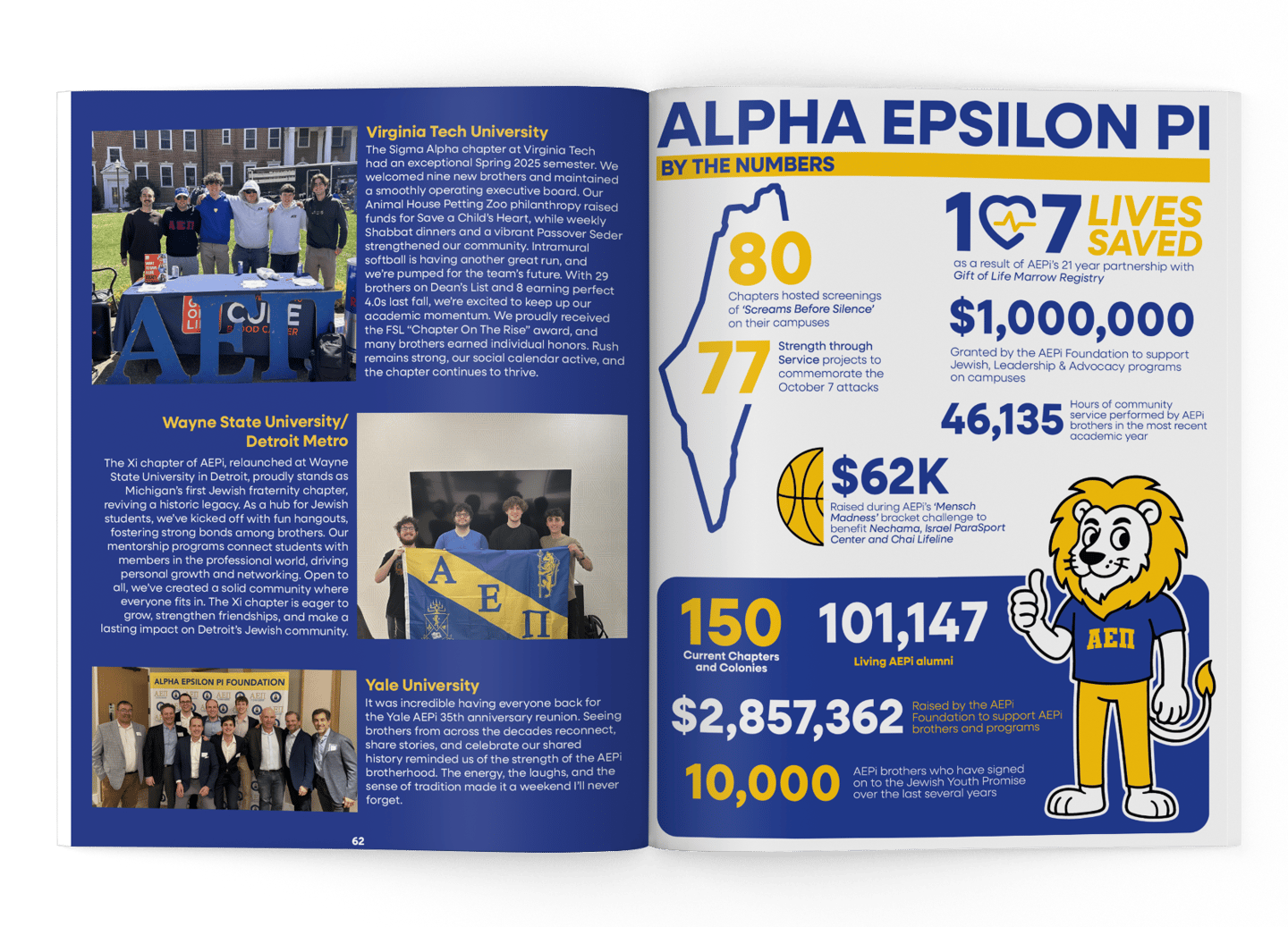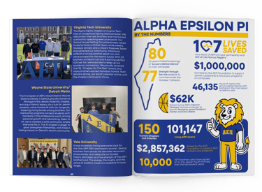 After a five-year hiatus, AEPi revived its official publication, The Lion, and I was tasked with designing the entire Spring 2025 edition — all 74 pages, front to back — in just two weeks. With a brutal turnaround and no recent issues to pull from, I built the layout from scratch, bringing a clean, modern magazine feel to the legacy format. From the cover design to every article layout, photo treatment, and graphic element, the final product felt cohesive and elevated. It was a massive solo lift on a tight deadline, and I’m proud to have brought The Lion back to life.
