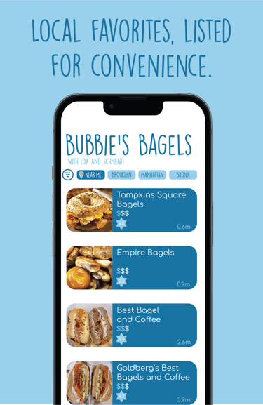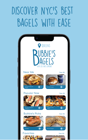 Bubbie’s Bagels is a concept app I created for a college assignment focused on map-based UX. Designed entirely from scratch in Adobe XD, the app helps users find the best bagels in NYC — kind of like Yelp, but if it only cared about bagels (and had a Jewish grandma running the place). I designed the full brand identity, including the hand-drawn logo, playful color palette, and an original illustration of “Bubbie” herself. The vibe is light, fun, and hyper-niche — built around a love of bagels, a sweet grandma, and clean UI. This one was just plain fun to make, and I love how distinct and scroll-stopping it turned out.